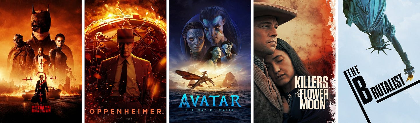 In the past couple of years, we’ve had The Batman (175 min), Oppenheimer (180 min), Avatar: The Way of Water (190 min), Killers of the Flower Moon (206 min) and The Brutalist (215 min).