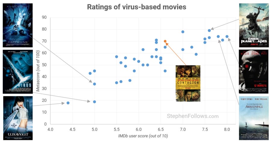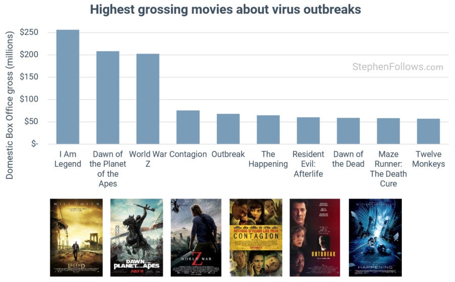 Today's topic was suggested by a number of readers, all of whom asked a variation of "What has been the effect of the Coronavirus on movies featuring viral outbreaks?"