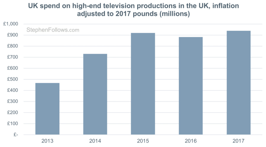 The result is that spend more than doubled between 2013 and 2015, although it remains half that of UK feature film production.
