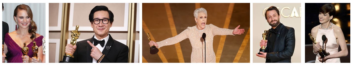 Supporting Actress: 2 out of 15. Anne Hathaway (2012) and Jamie Lee Curtis (2022).