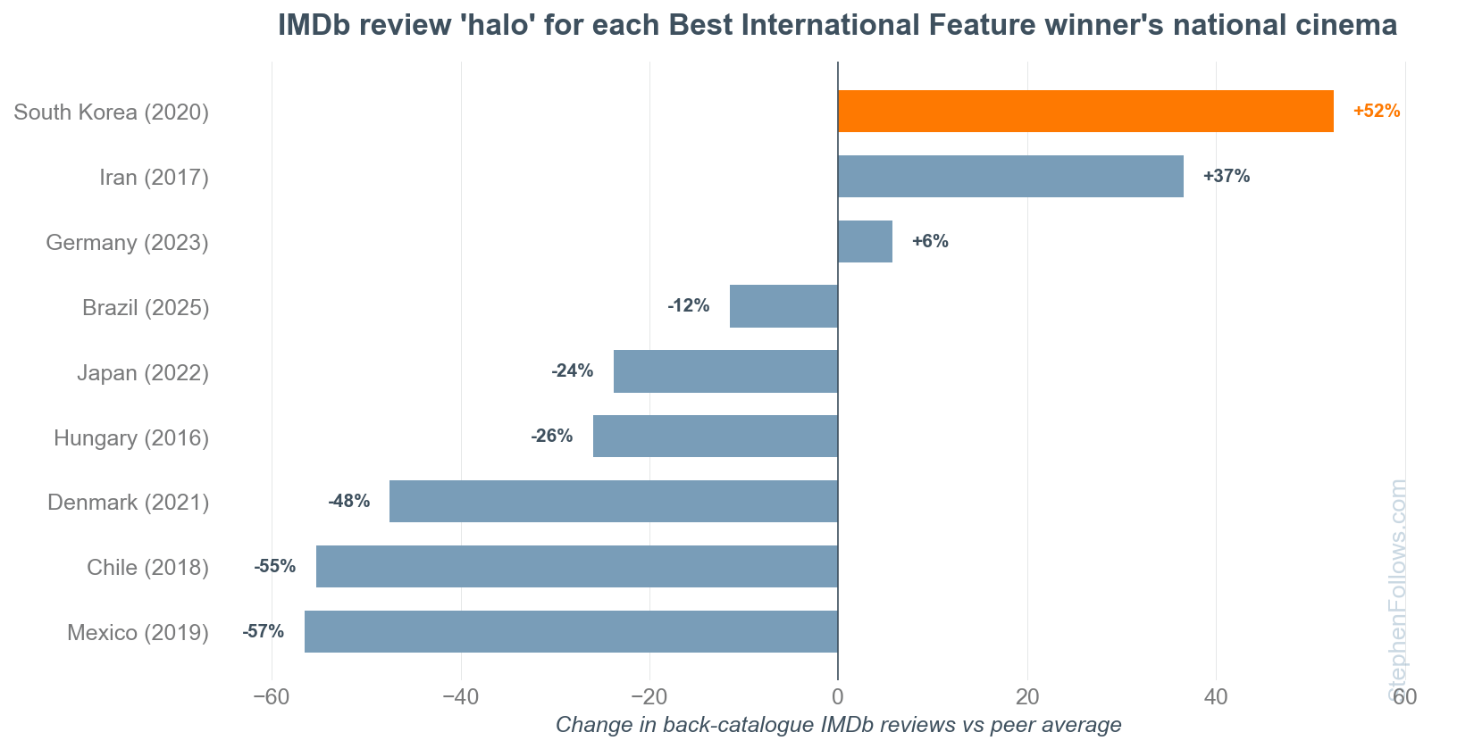 I crunched eight years of Wikipedia data and 10 million reviews across nine Oscar-winning countries and 12,267 films to find out whether the Parasite effect was real or not.