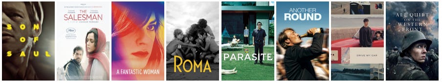 I took the Best International Feature Oscar winner from 2015 to 2025 and pulled their country’s entire film back catalogue i.e. every film from that nation with a Wikipedia page, minus the winner itself.