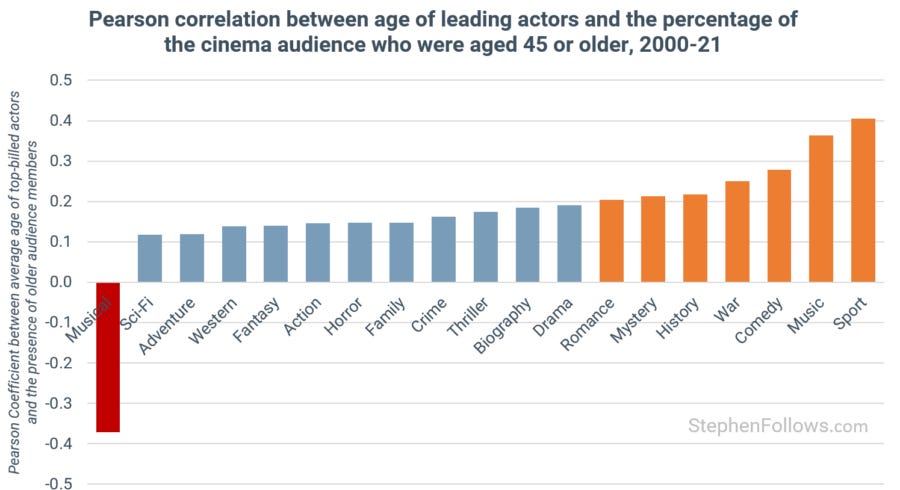 This prompted the filmmaker to get in touch with me to ask: "Is there a correlation between the age of the audience and the age of the lead actors in the films they chose to see?".