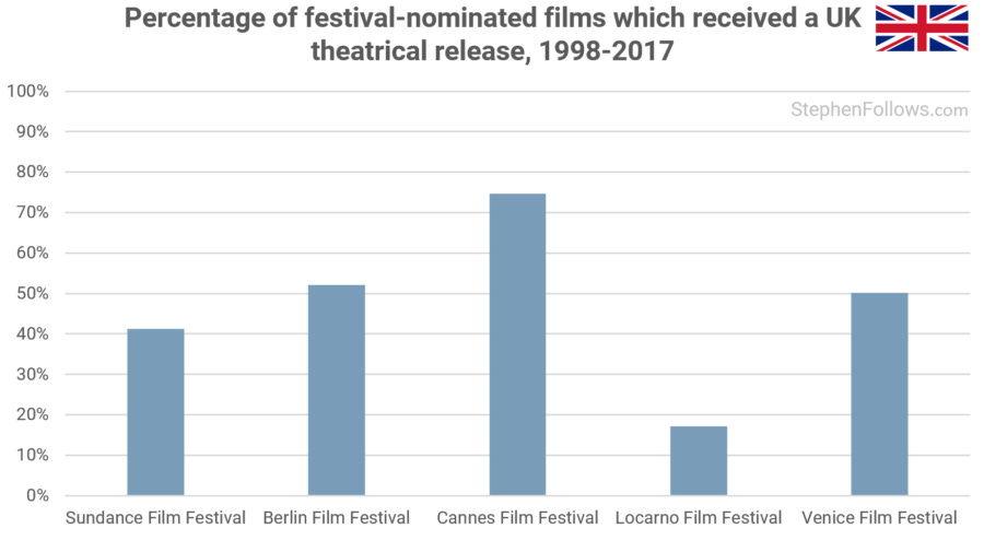 In the UK, Cannes films are more successful, but Sundance films are much less so. Locarno still languishes below one in five.