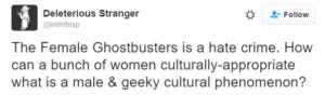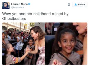 When the new female-focused Ghostbusters movie was announced, a small but vocal group of people leapt onto Twitter to complain about how the movie was retrospectively "ruining their childhood". The internet decided that the movie was a referendum on whether women are a Good or Bad thing (i.e. "Do you want to leave the sexist world of the 1970s or remain?")