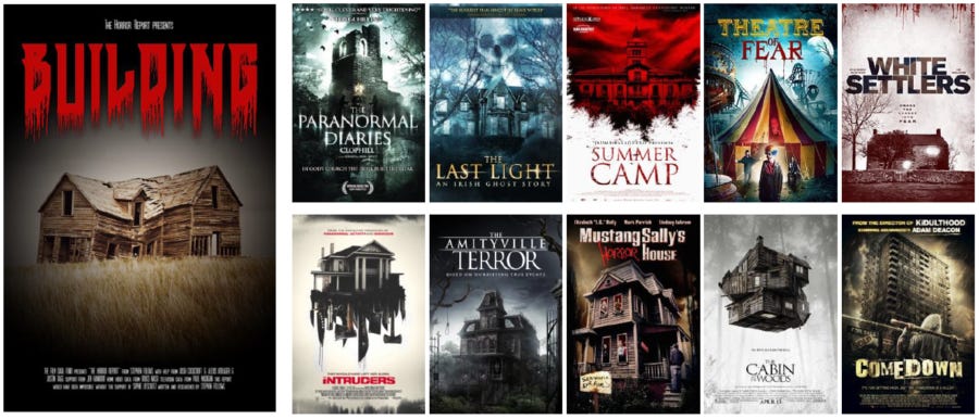 Single location horror, usually linked to paranormal horror, tends to feature its location on the poster itself. This gives a notion of the type of film and hints at the threat behind it, without giving too much away.