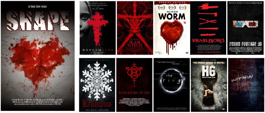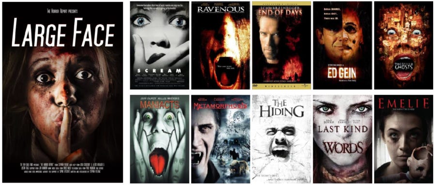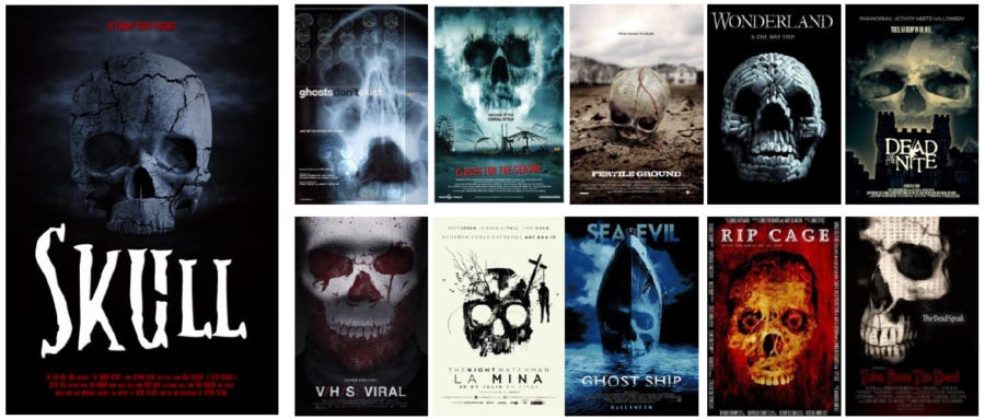 Movie poster designers don't seem worried about their work feeling derivative and often they are actually counting on your sense of déjà vu to promote their new movie. So it's not surprising that some movie posters end up looking similar to one another. Even with that in mind, I doubt most people are aware of just how little diversity there is within movies of the same genre. Today, I'm going to share the patterns among horror movie posters.