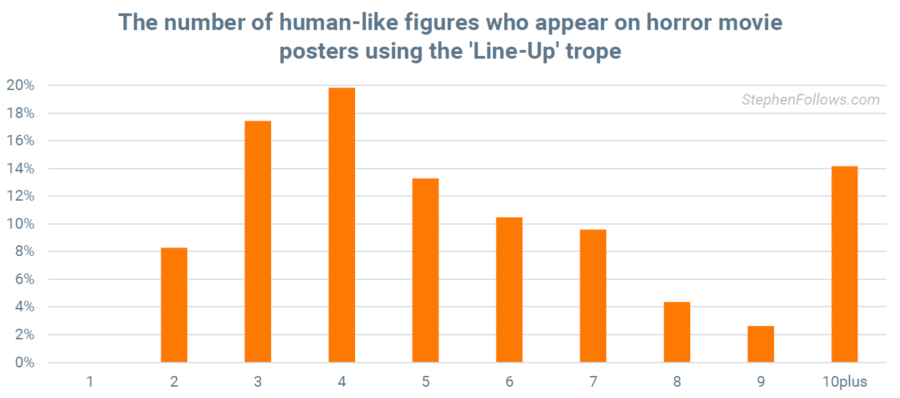 The majority of horror movie posters feature one or two human (or human-like) figures.