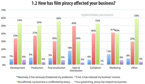 Unsurprisingly, the sectors which felt most negatively affected by piracy were Sales, Distribution and Exhibition.