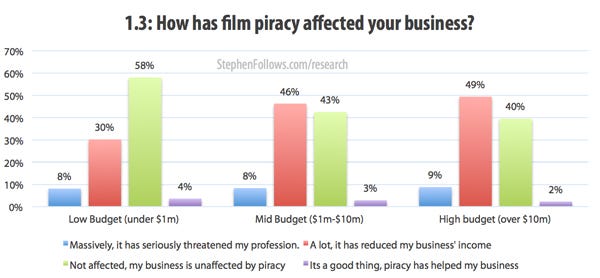 Nearly two thirds of those working on budgets under $1 million do not feel piracy has negatively affected their business.