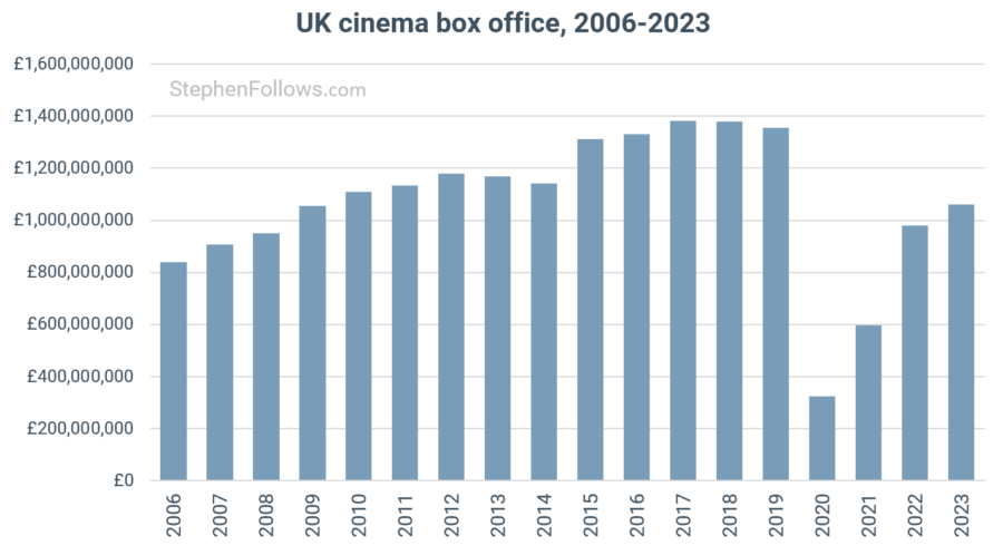The numbers show some of this very clearly. The UK box office limped past £1 billion in the final weeks of 2023 - ending at only 78% of the 2019 total, even before we take inflation into account.