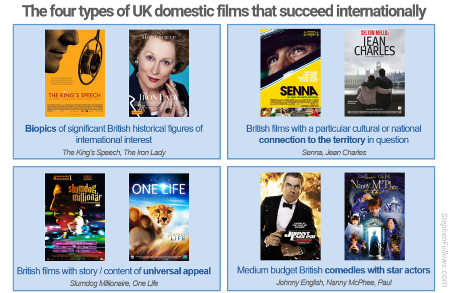 In 2012, David Steele authored a paper entitled 'International Territory Review' which looked at the global market for UK films. Among his fascinating findings was a pattern to the types of British films that perform well outside the UK. He noted that these films tended to fall into one of four types: