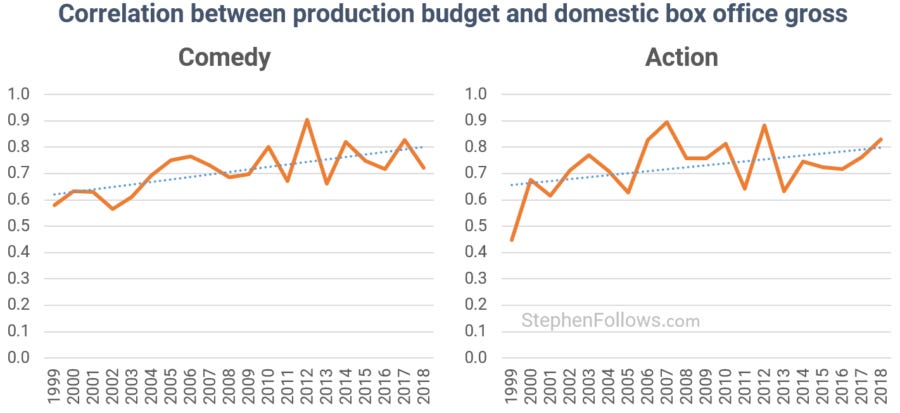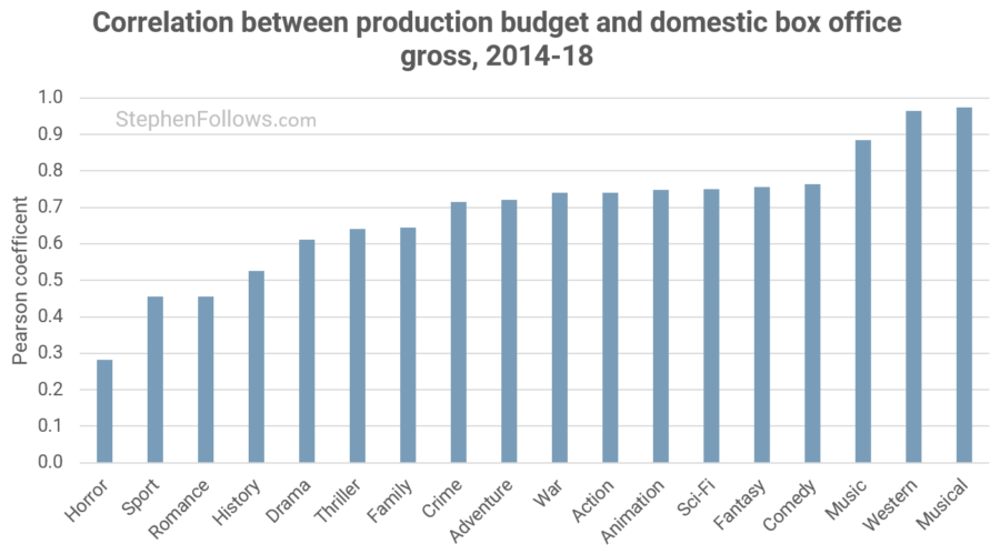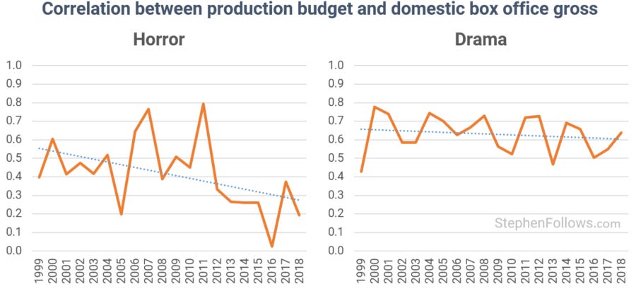 And both Horror and Drama movies are seeing a weakening of the connection between their budgets and cinema takings.
