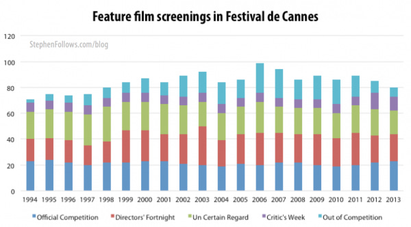 In recent years, they have added a market for short films, called Short Film Corner. Sadly, I don't have historical data for Short Film Corner but I do have data for 2013...