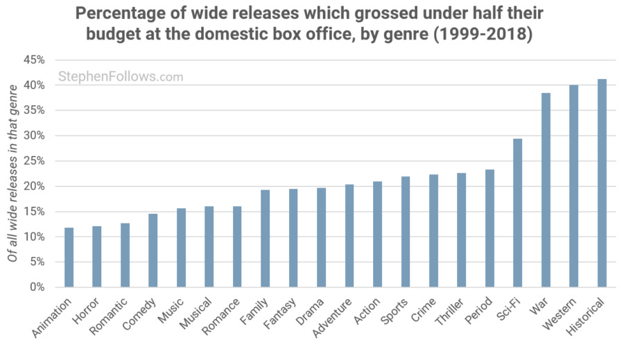 Over 40% of all historical films which opened in a wide release over the ten years I studied flopped (by my definition) - unlike animations, where only 12% failed to hit the mark.