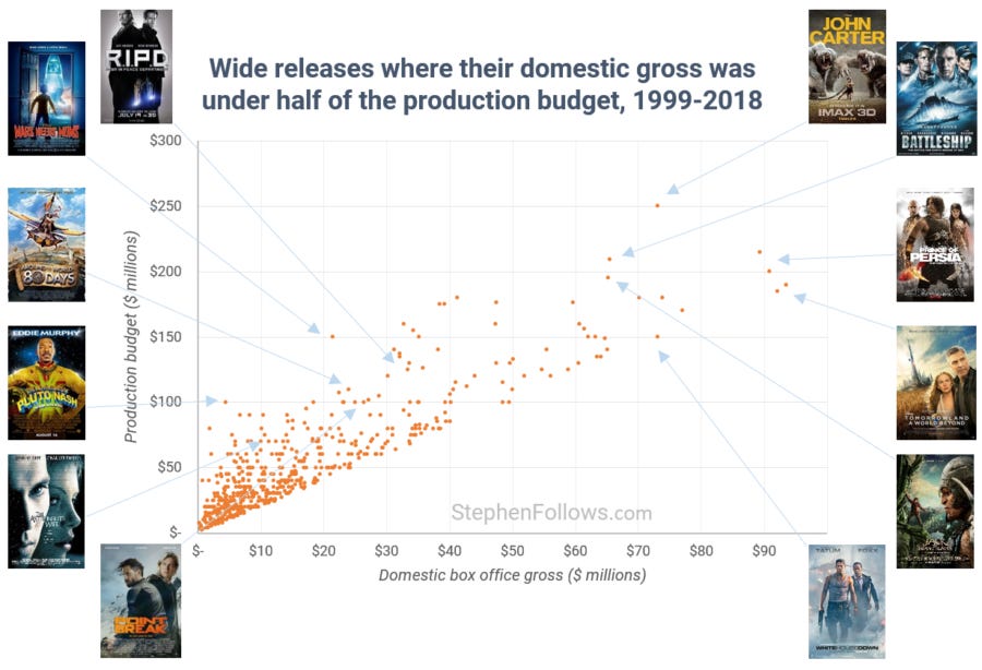 For the purposes of this article, I'm going to define a flop as: A feature film which received a wide domestic theatrical release, but which domestically grossed under half of its production budget.