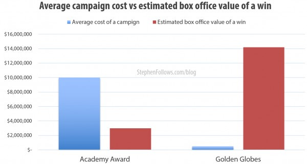 So when you compare his 'value' of $3 million for a win with the average Oscar cost of $10 million for the campaign, there doesn't seem to be a clear financial reason for Oscar campaigns.
