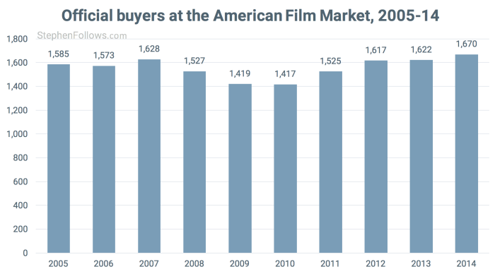The table below gives you the fine detail on the number of officially accredited buyers at the American Film Market over the past 10 years.