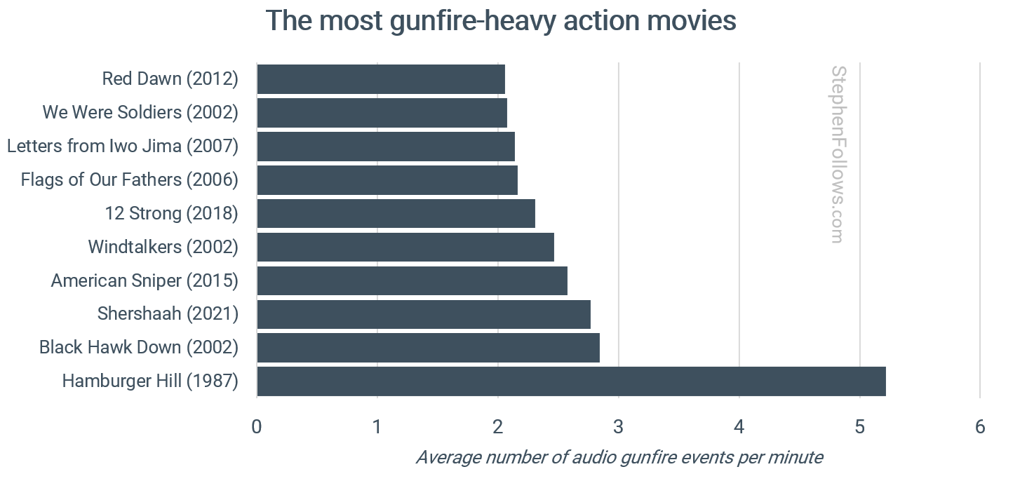 Only one of the ten ‘most gunfire-heavy action films’ was made before 2000 - Hamburger Hill whcih was the most gunfire-intensive film I tracked.