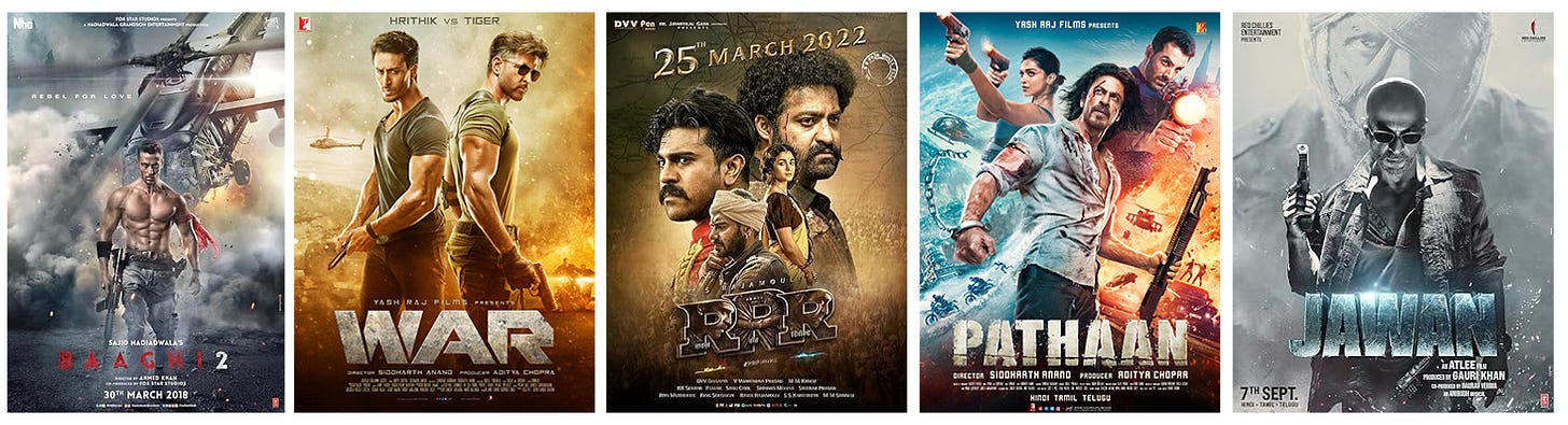 Modern action films are, in a very literal sense, more like musicals than their predecessors. It is perhaps no surprise that some of the most exciting action films of the past few years have come from Bollywood cinema (RRR, Pathaan, Jawan, War, Baaghi 2, etc), which is taking more cues from musicals than Hollywood action films.