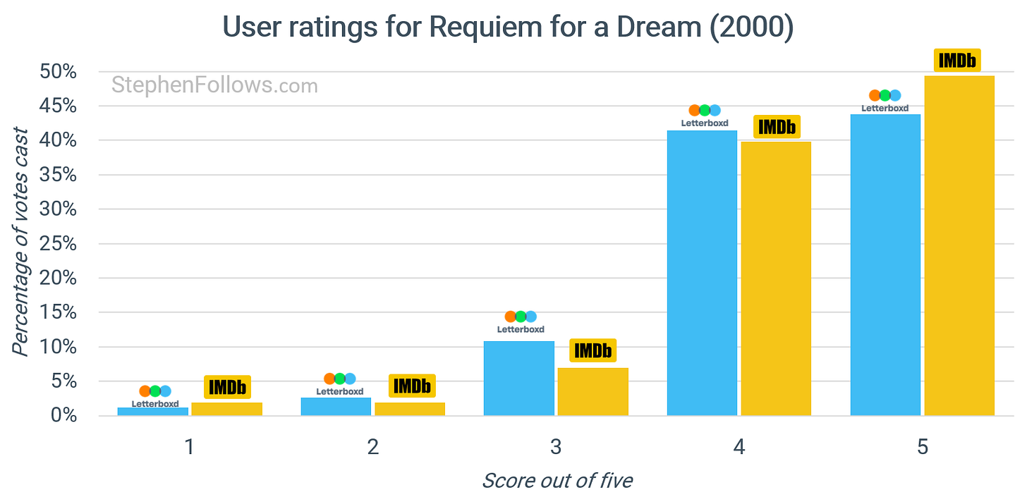 Despite its universal acclaim, when I built a list of Letterboxd user lists along the lines of ‘great films you don’t rewatch’, Requiem for a Dream appeared on 99.2% lists.