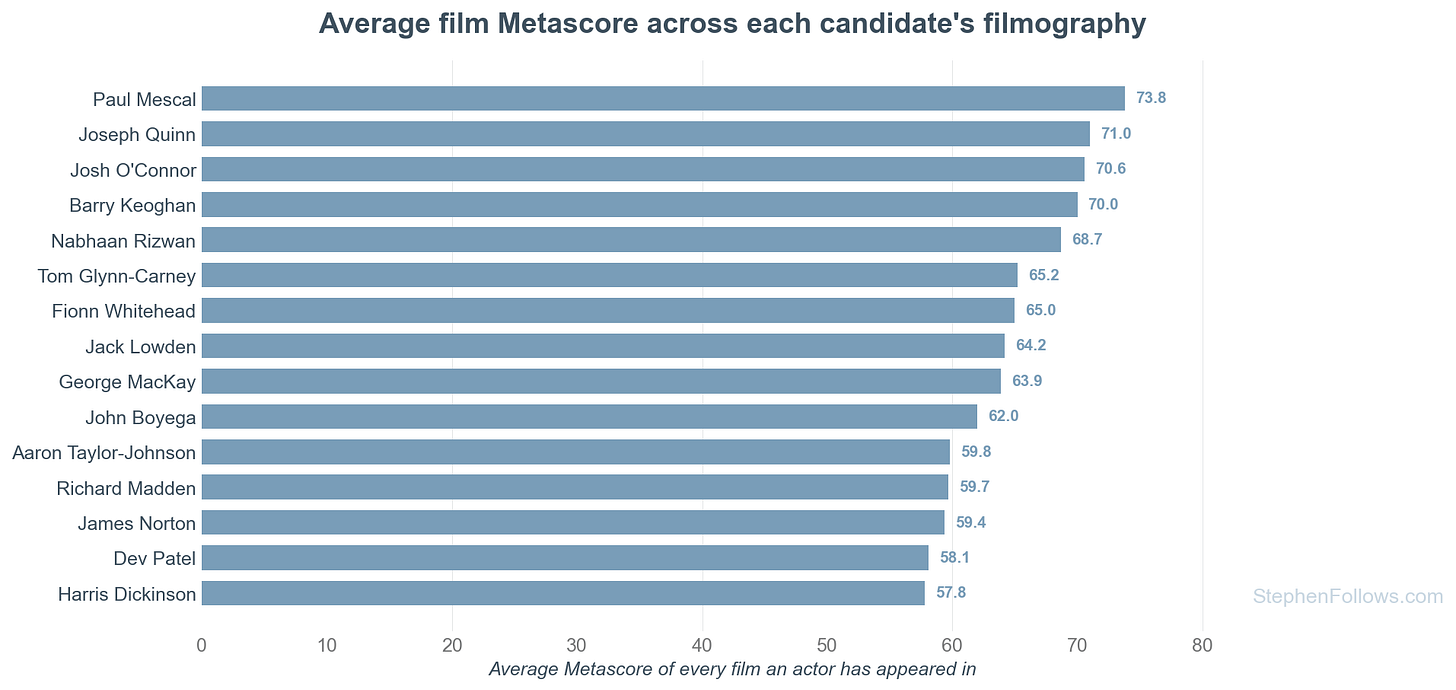 Even with all those caveats, the fact that Callum Turner, the current bookies’ favourite, sits in the worst third of his peer group on miscast mentions might be a concern.