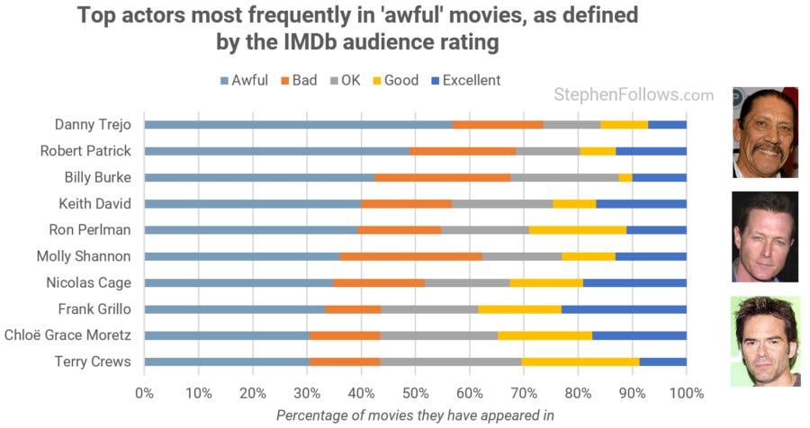 Today, I am going to look at another facet of an actor's brand: what their presence in a movie signals to the audience about the movie's quality.