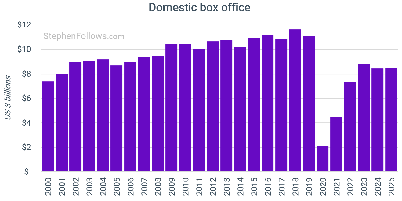 The 2025 domestic box office ended the year well below the late-2010s highs, despite multiple major releases.