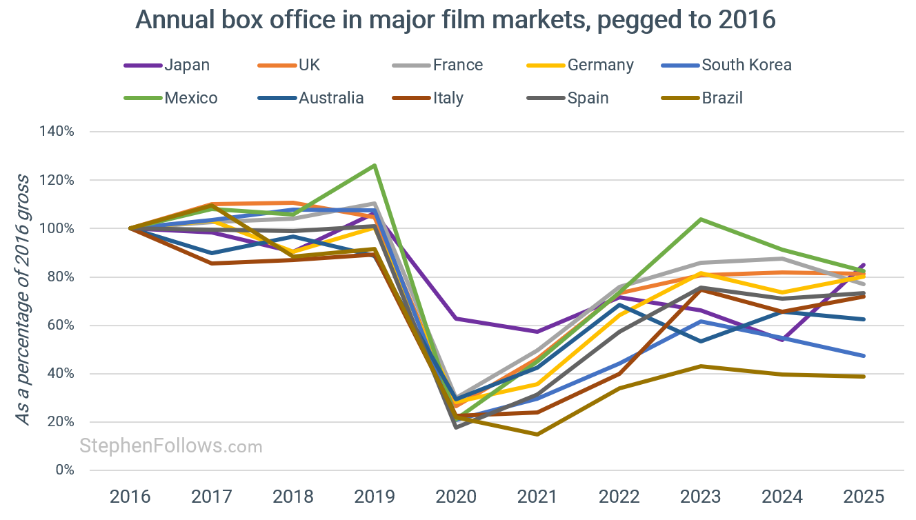 As far as I can tell, the only countries in which the 2025 box office matched that of 2019 were still-maturing markets, such as the United Arab Emirates.